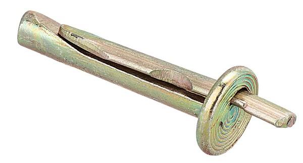 Клиновой анкер применяется как крепеж тяжелых элементов к бетону, естественному камню, и кирпичу. Анкер забивается в предварительно заготовленное отверстие в основание и притягивается гайкой.