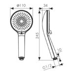 Душевая лейка KAISER массажная 4-х режимная, Ø110х245мм, в коробке /Пластик/Хром
