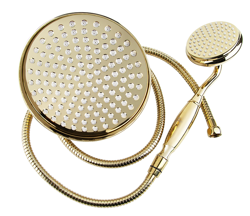 Душевая система KAISER Aria с термостатом, золото (стац. лейка мет. Ø-206mm)