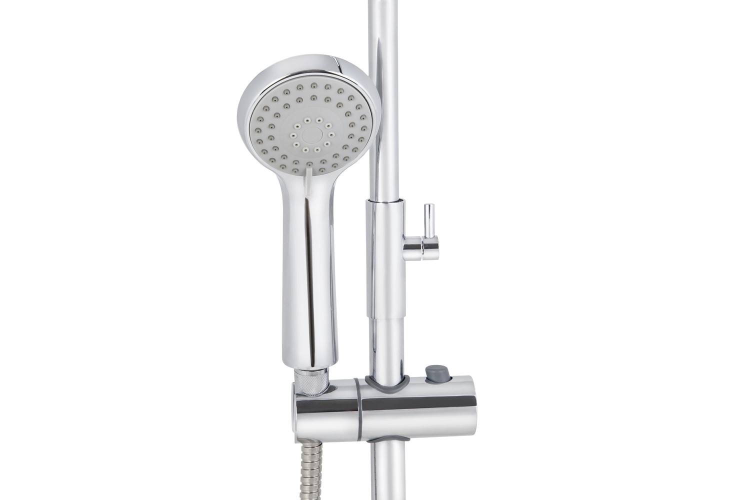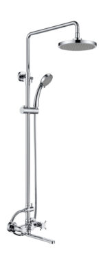 смеситель; релинг; верхний душ; душевая лейка; держатель лейки; шланг; крепления |