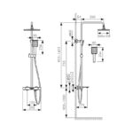 смеситель; релинг; верхний душ; душевая лейка; держатель лейки; шланг; крепления |