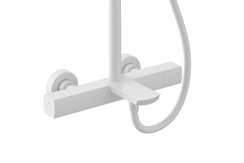 Душевая система KAISER Cube с термостатом и изливом, с регулируемой высотой верхнего душа, цвет покрытия белый матовый