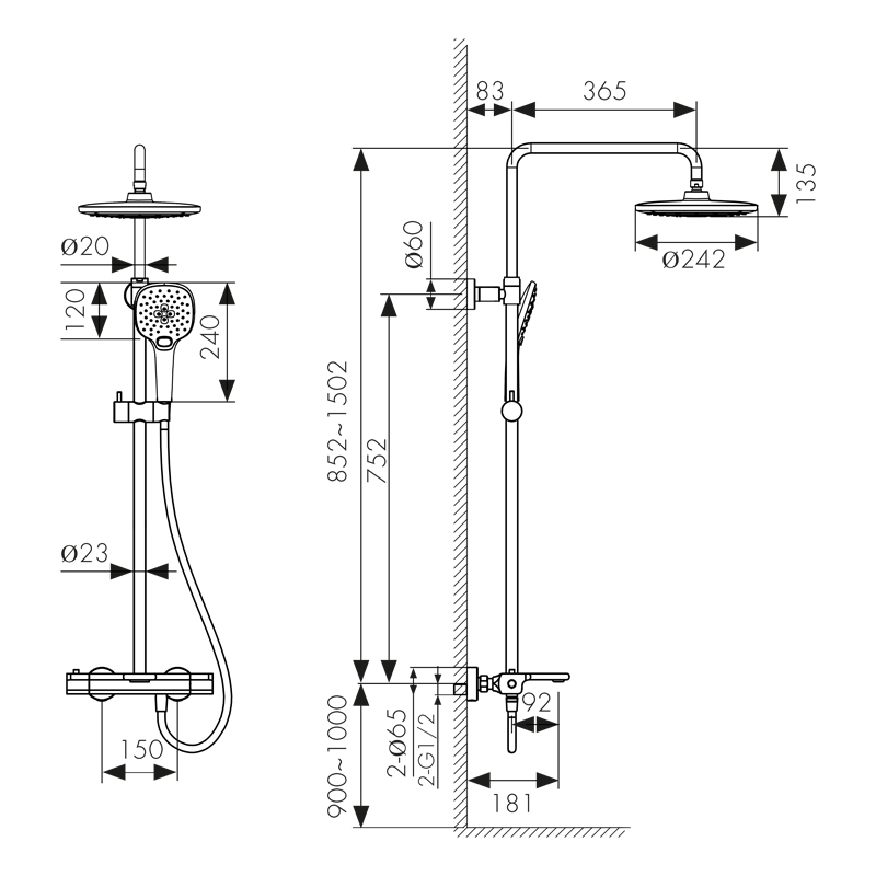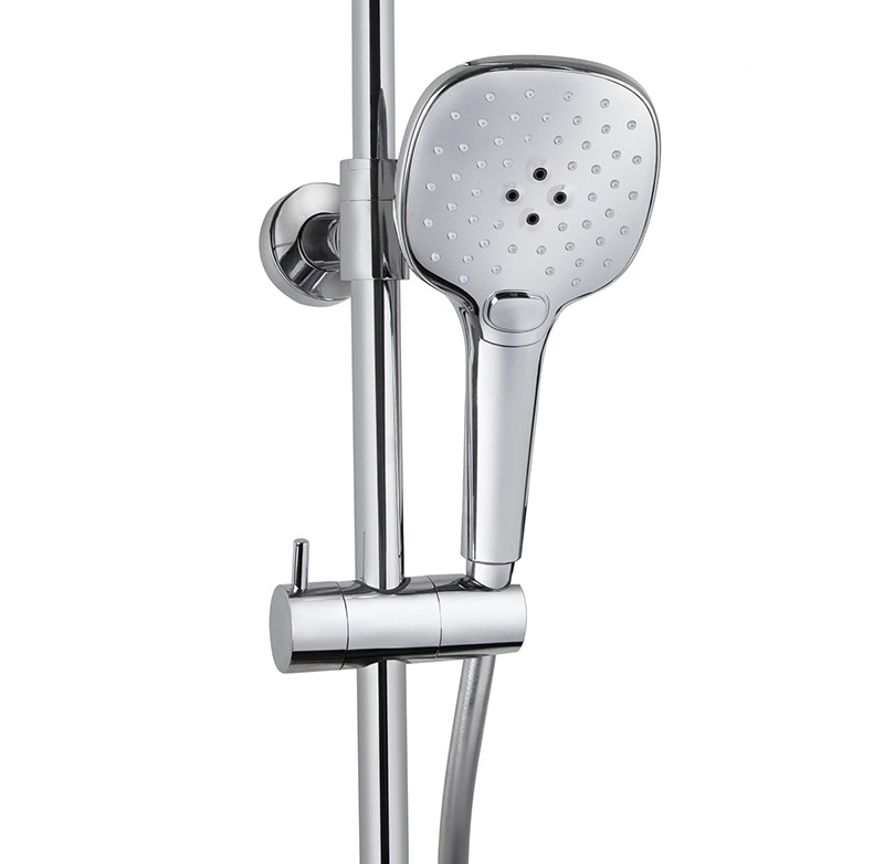 смеситель; релинг; верхний душ; душевая лейка; держатель лейки; шланг; крепления |