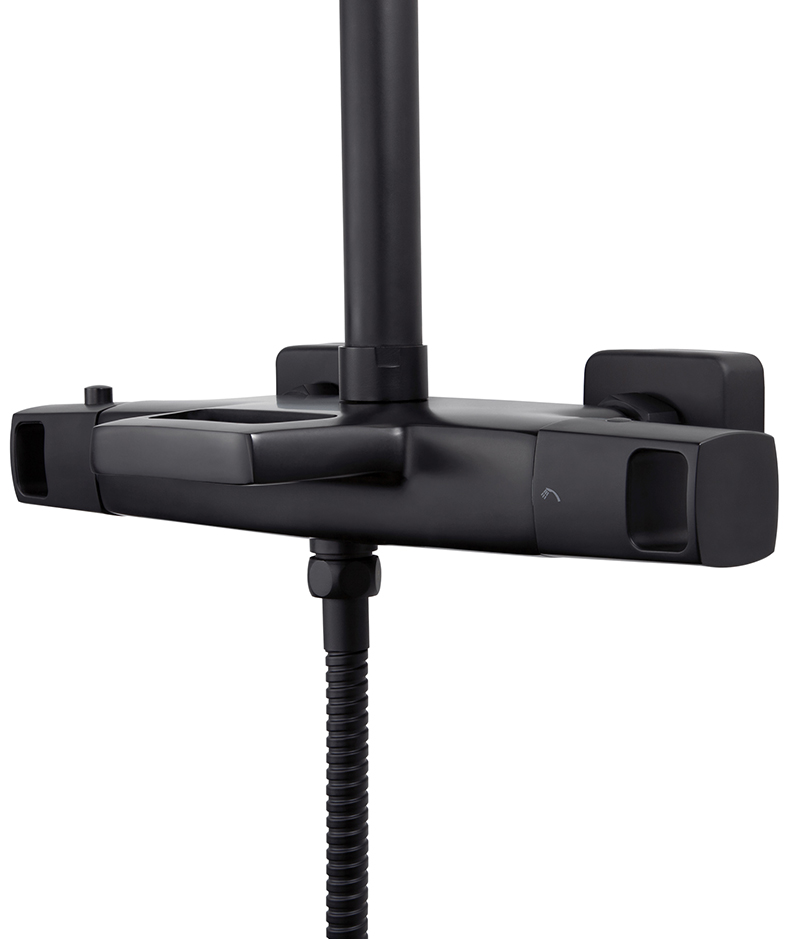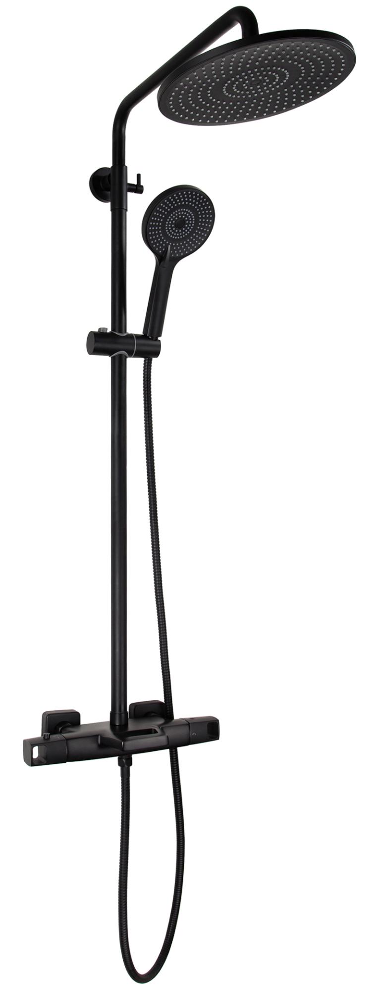 Душевая система KAISER Quadris с термостатом (стац. лейка ), черный матовый