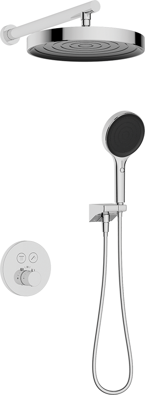 Душевая система KAISER Sano с термостатом скрытого монтажа, поворотн. держатель (4-jet, стац. лейка Ø300*33mm) /Хром