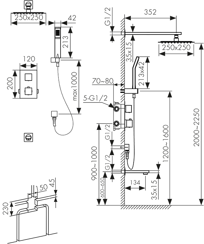 Душевая система термостатическая с изливом скрытого монтажа KAISER Sonat.