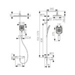 смеситель; релинг; верхний душ; душевая лейка; держатель лейки; шланг; крепления |