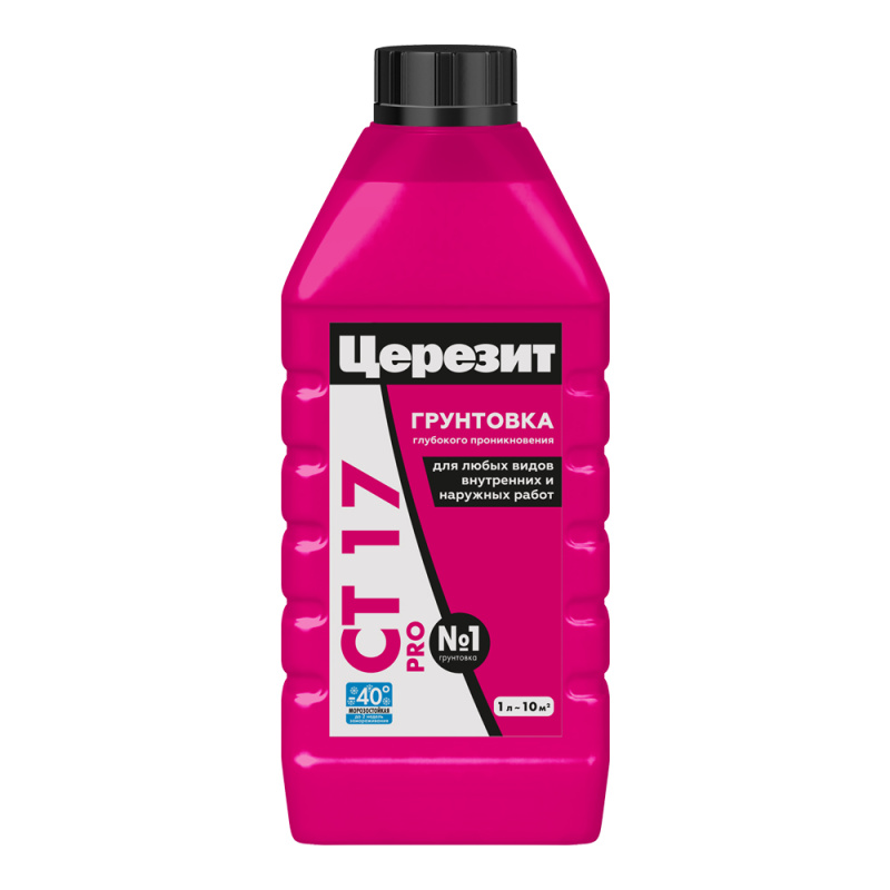 Ceresit CT 17 глубоко проникает в поверхностные слои основания, повышает их прочность и износостойкость, связывает пыль и уменьшает впитывающую способность. Грунтовка поверхности предотвращает пересыхание растворных смесей в тонком слое, что обеспечивает достижению наибольшей прочности раствора, повышает адгезию материалов к основанию, уменьшает трещинообразование в укладываемых выравнивающих массах и т.д.