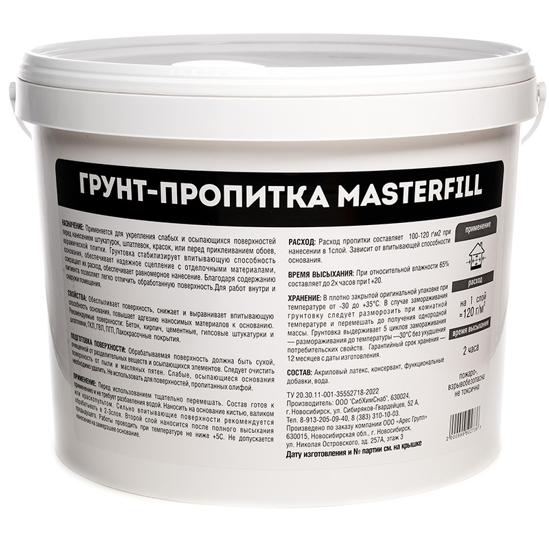 ХРАНЕНИЕ: В плотно закрытой оригинальной упаковке при температуре от -30 до +35°С. В случае замораживания грунтовку следует разморозить при комнатной температуре и перемешать до получения однородной массы. Грунтовка выдерживает 5 циклов замораживания — размораживания до температуры —30°С без ухудшения потребительских свойств. Гарантийный срок хранения — 12 месяцев с даты изготовления.