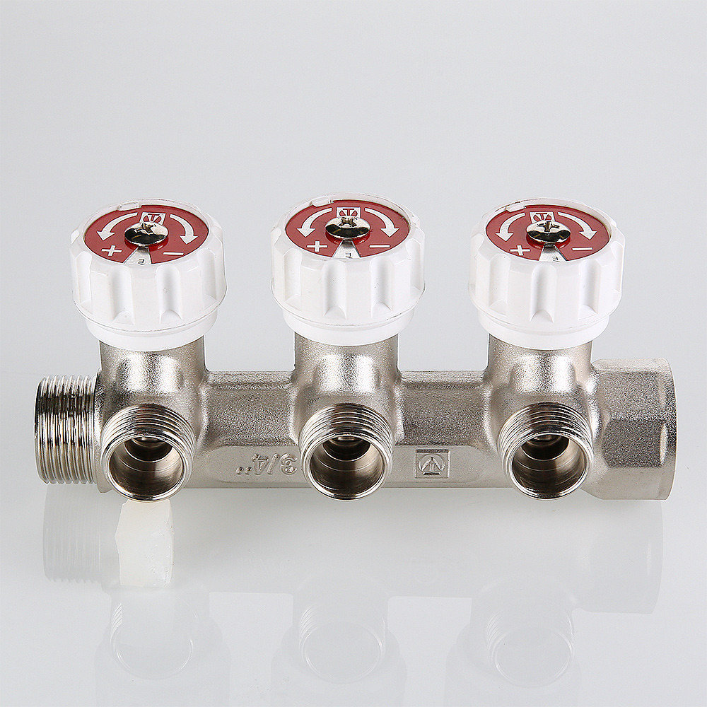 Коллектор с регул. вентилями, VALTEC 3/4″х2 вых. 1/2″ нар.