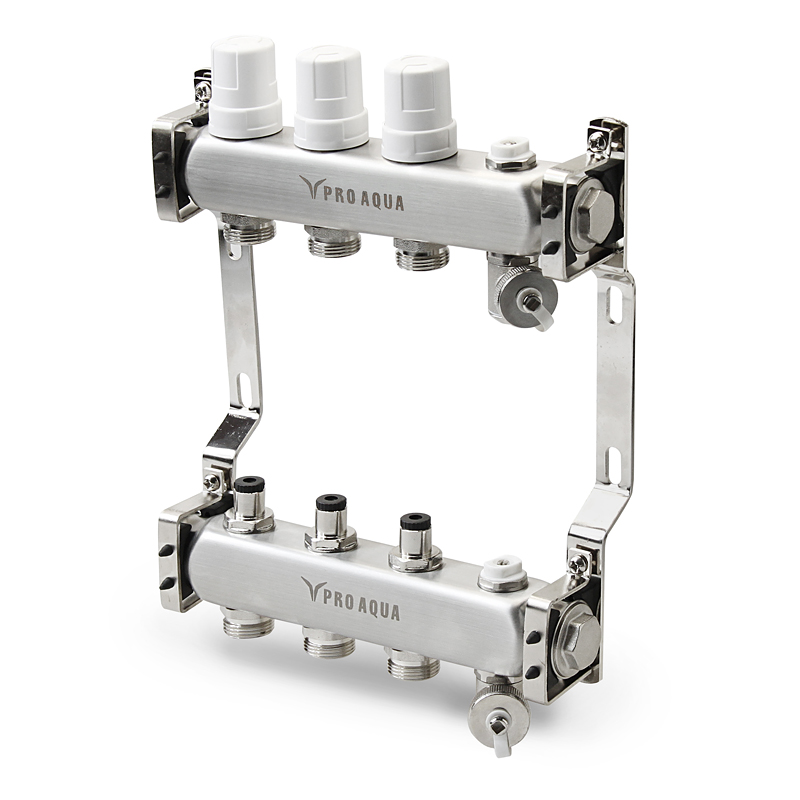 Коллекторная группа (отопл.) с регулировочными клапанами 4 вых., 230 мм, 1 x 3/4 PRO AQUA