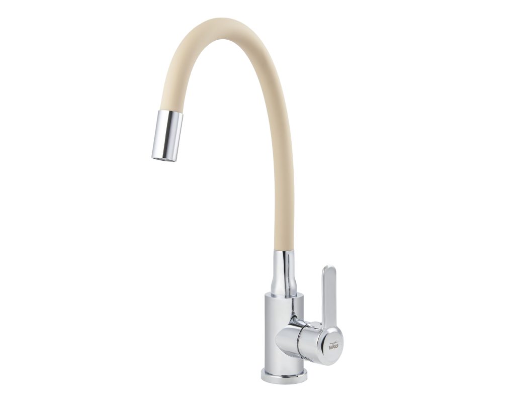Смеситель VIKO кухня боковой с бежевым гибким изливом Ø35, нерж. сталь с гайкой, корпус: хром