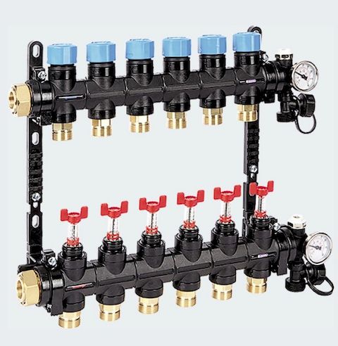 Композитная коллекторная группа с расходомерами и термометром, 1″-6х3/4″ЕК