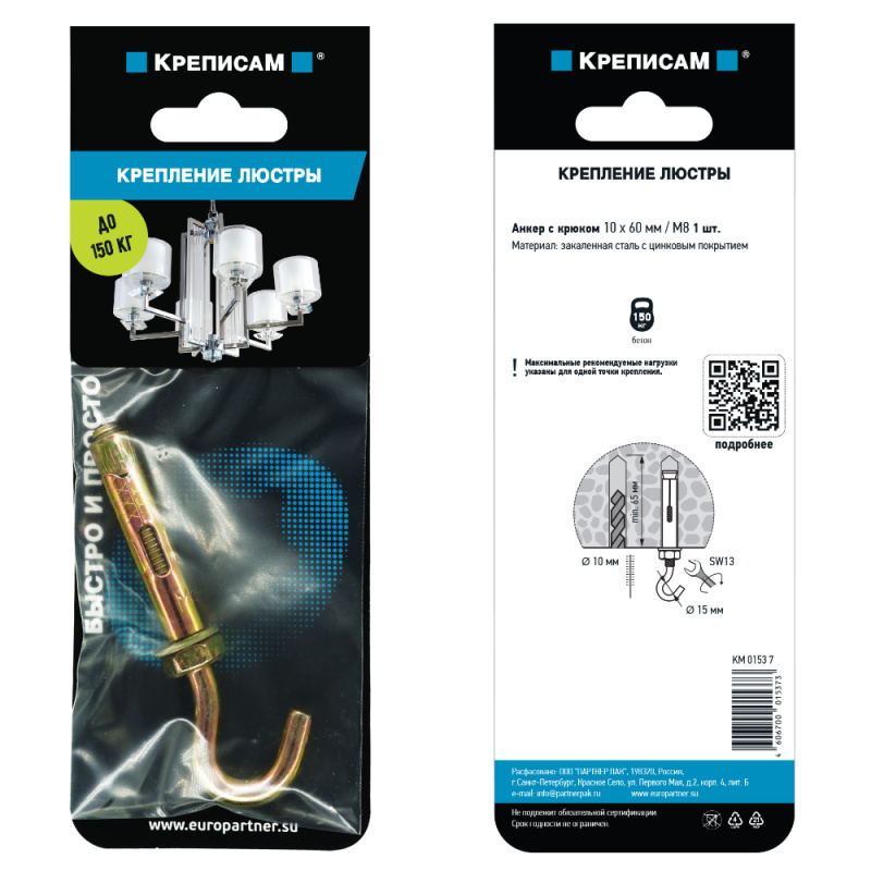 Дюбель распорный 6х50 шипы-усы Чапай(синие) (1000 шт)// TECH-KREP