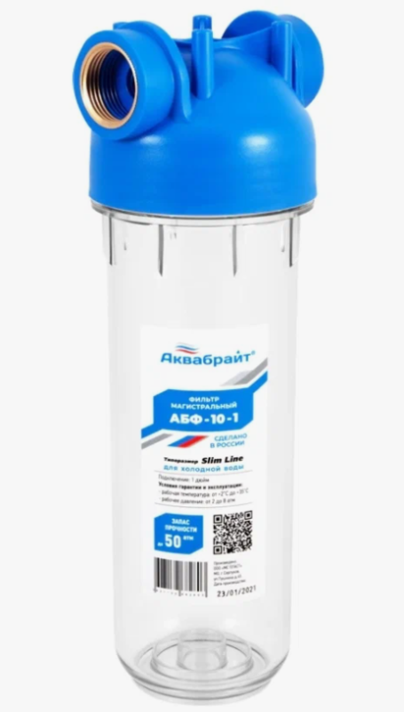 Фильтр магистральный SL10″ лат.рез.1″ прозрачный (Кронштейн+ключ) «Аквабрайт» (12)