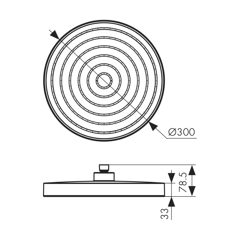 Лейка KAISER стационарная, Ø300х33mm, в коробке /Пластик/Чёрный матовый