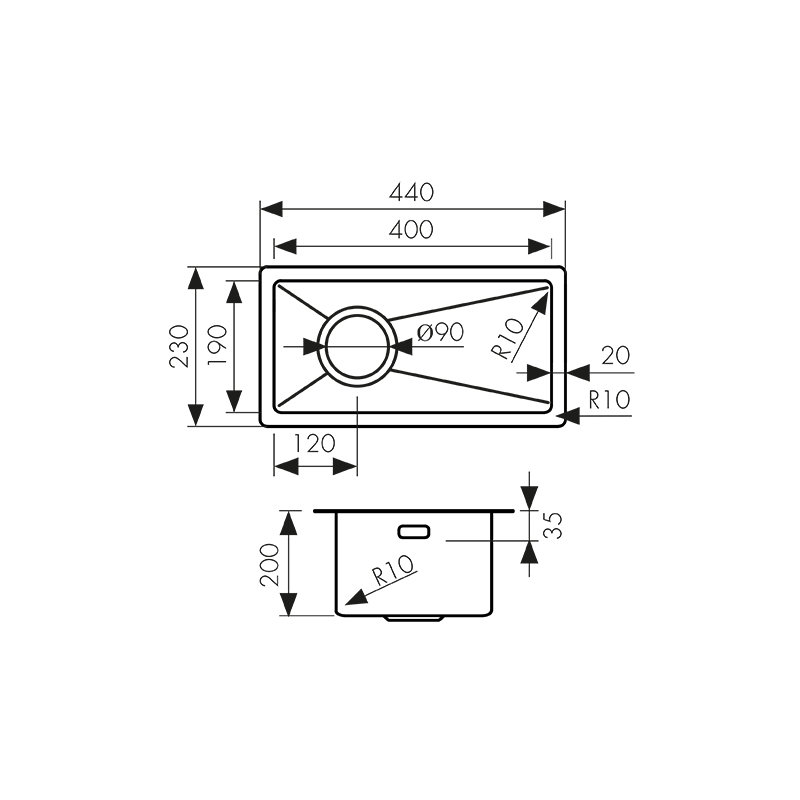 Мойка из нержавейки KAISER 230x440x200*2.0+1.2mm (цвет покрытия: сталь) /сифон