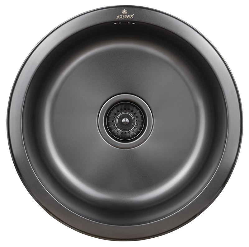 Мойка из нержавейки KAISER (круглая) 425×188*0,8mm (воронёная сталь) /сифон