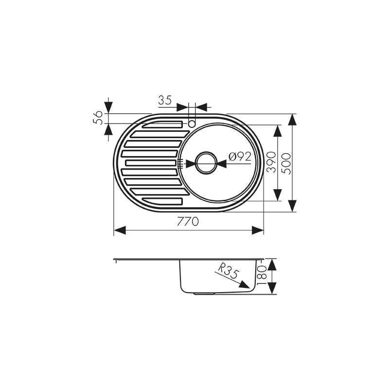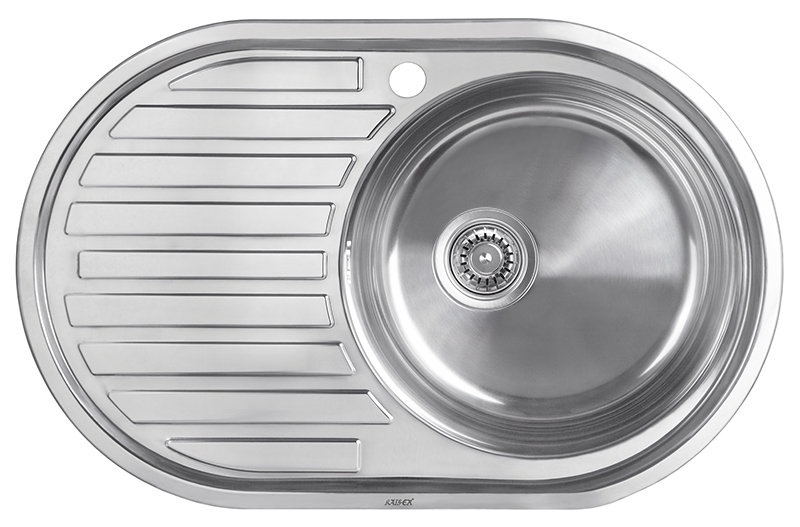 Мойка-Нерж «KAISER» врезная 770×500*180*0.8mm, чаша Ø390мм, хром овальная/правая