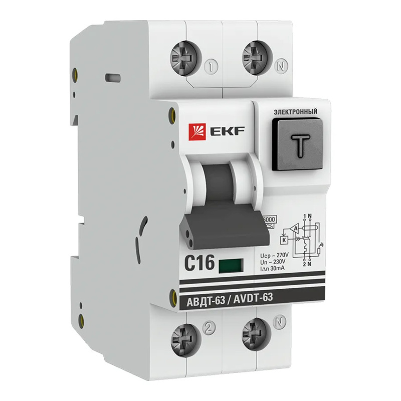 Дифференц. автомат АВДТ-63 16А/30мА (характеристика C, эл-мех тип A) 6кА EKF PROxima