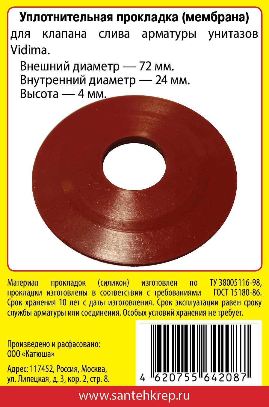 Количество товара Набор САНТЕХНИК №27 силиконовая мембрана арматуры Vidima