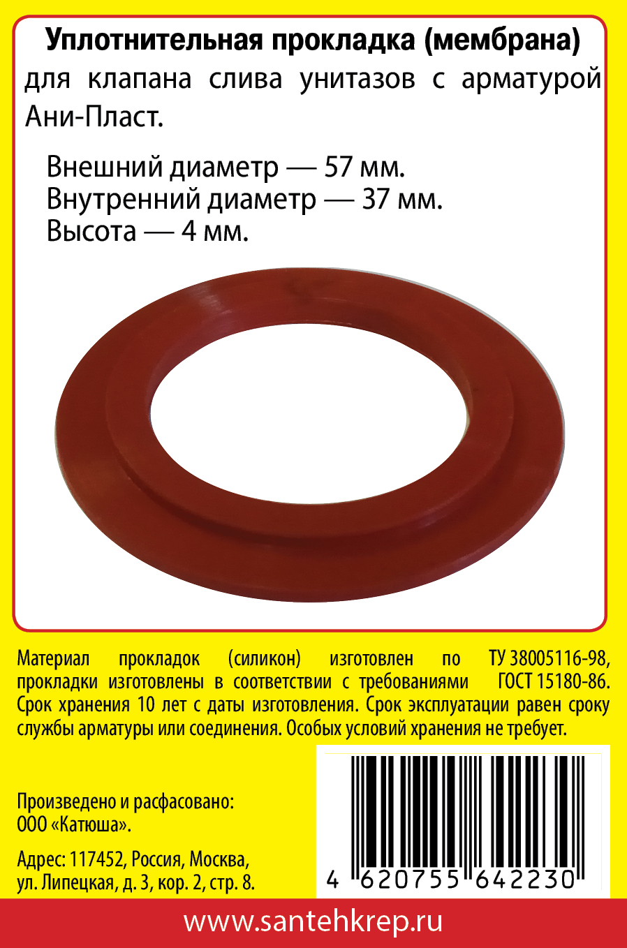 Количество товара Набор САНТЕХНИК №36 силиконовая мембрана арматуры Ани Пласт