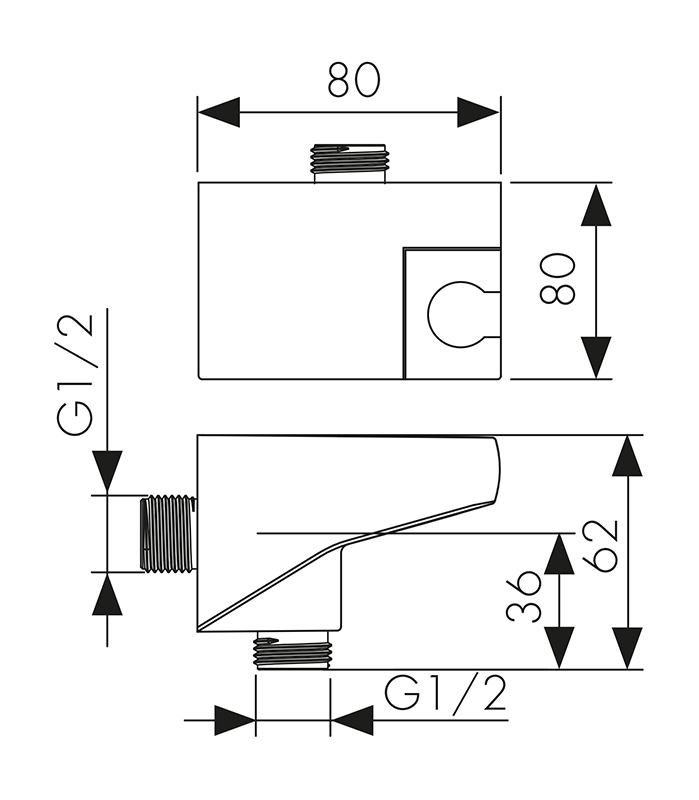 Настенное подключение шланга с поворотным держателем KAISER 80х80х62мм /Пластик/Хром