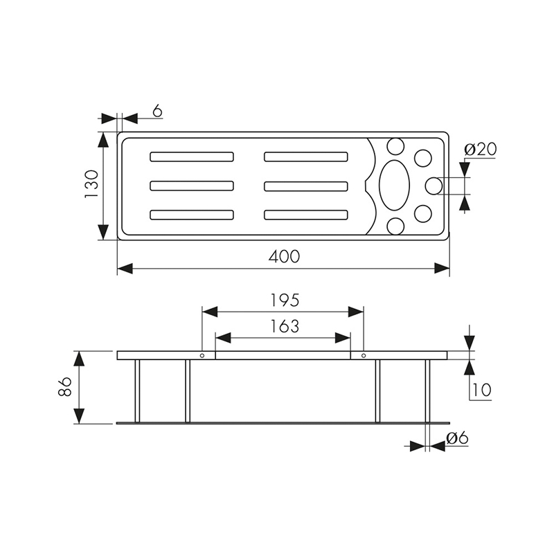 Полка настенная прямая KAISER с держателем для зубных щёток из нержавеющей стали, 400х130х86 мм, хром