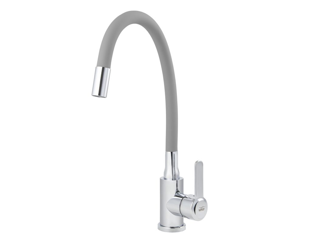 Смеситель VIKO кухня боковой с серым гибким изливом Ø35, нерж. сталь, гайка, корпус: хром