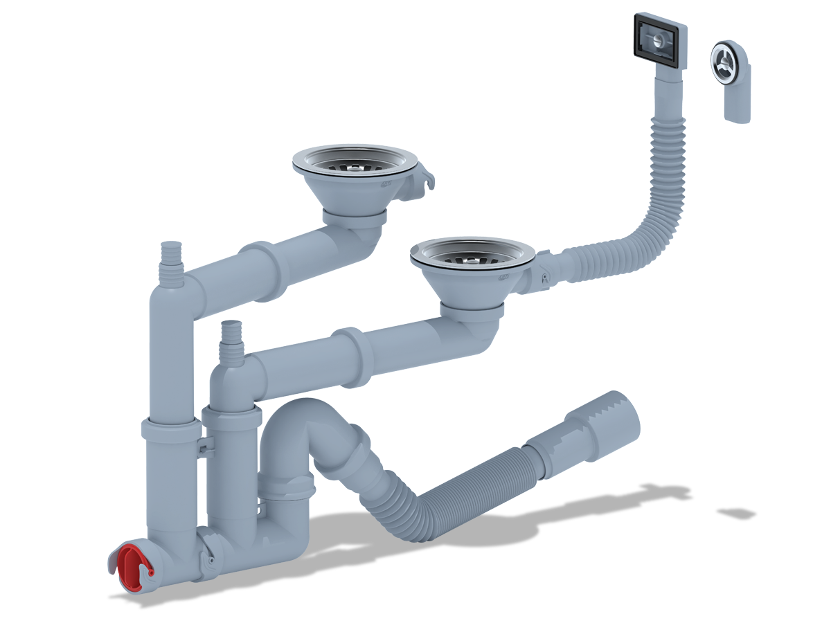 F3545SA15 Сифон 2-ой Ани 3 1/2″*40 смещ. с отводом круг. и прямоуг. переливом с г/тр. 40х40/50