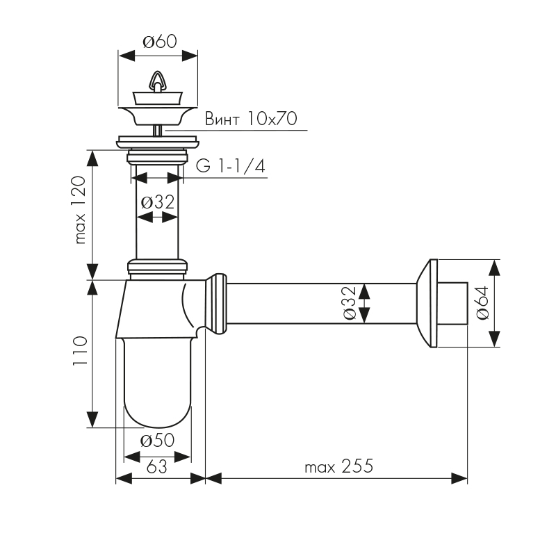 Сифон KAISER для раковины с выпуском (хром) (стар. арт. 973Z)