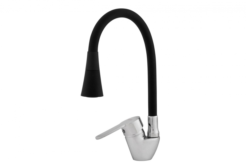 Смеситель для кухни Однорыч. гибкий излив, 2-х режим. карт.40мм ЧЕРНЫЙ (латунь) RUSANT PC-К 336-06