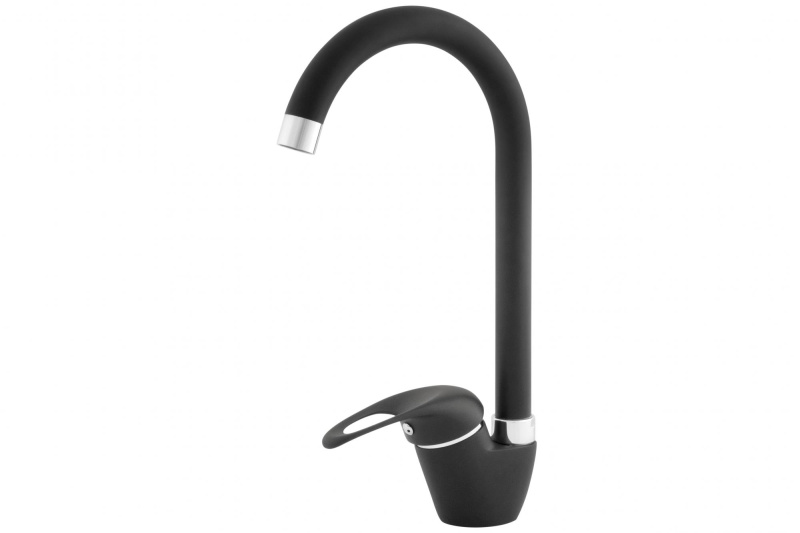 Смеситель для кухни Однорыч. высокий излив, бок.ручка, карт.40мм ЧЕРНЫЙ (латунь) RUSANT PC-К 331-03