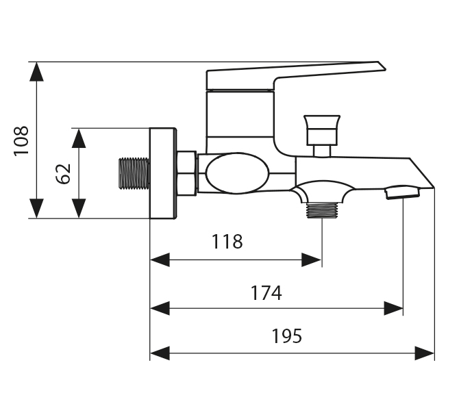 Смеситель KAISER 08022 Areva для ванны однорычажный.