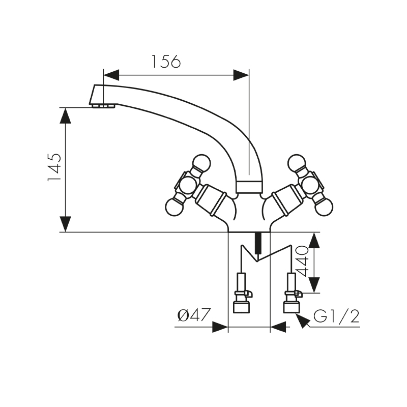 Смеситель KAISER 11061 Carlson Lux для раковины с двумя рукоятками.