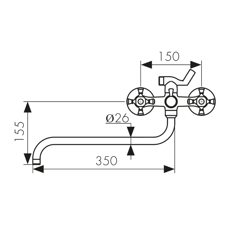 Смеситель KAISER Carlson Style для ванны крест керамика с картридж. перекл.