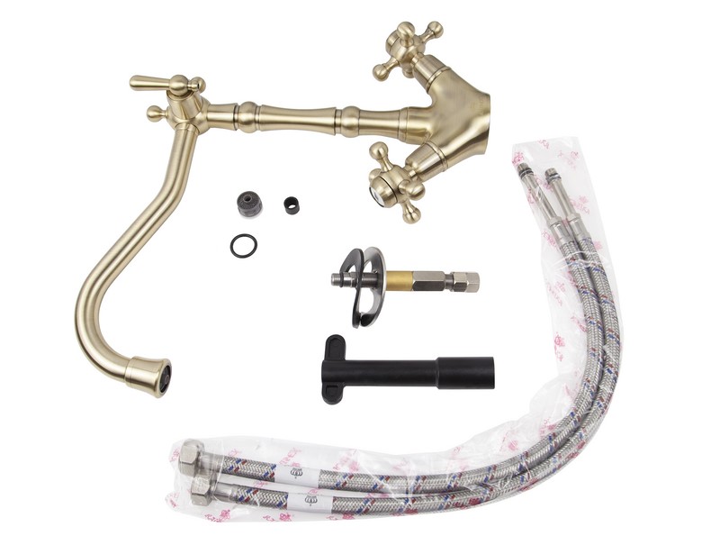 Смеситель Kaiser 44133-1 из коллекции Carlson Style с подключением под фильтр. Для подачи питьевой воды у основания излива размещен отдельный рычаг. Смеситель имеет сдвоенный аэратор, внутри излива проходит трубка для фильтрованной воды, что исключает возможность смешивания с проточной водой. Преимущество совмещенных смесителей заключается в том, что не нужно делать дополнительных отверстий на мойке и устанавливать отдельный кран для питьевой воды.