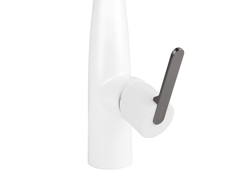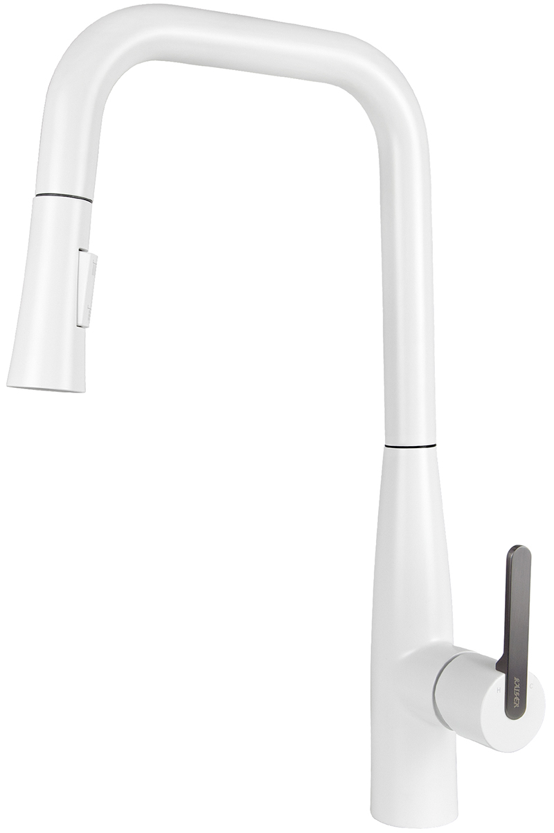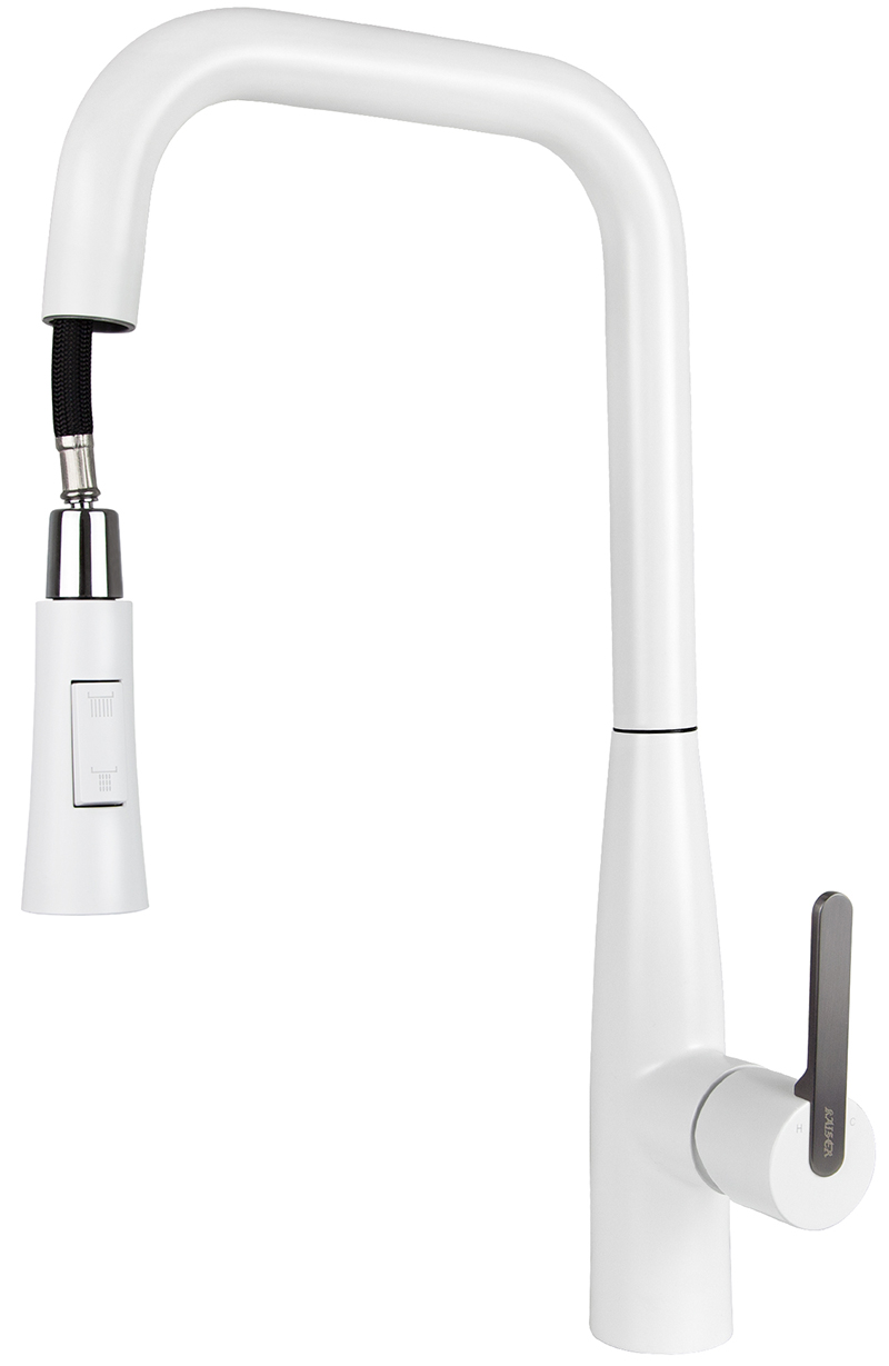 Смеситель KAISER Claro для кухни с вытяжной лейкой Ø35 /Латунь /Белый матовый и воронёная сталь