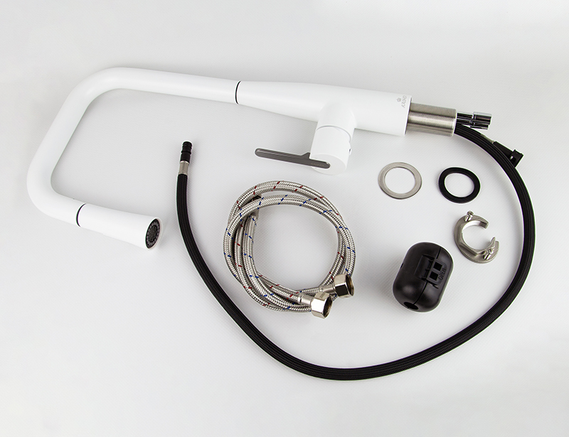 22144-24 Смеситель KAISER Claro для кухни с вытяжной лейкой, белый матовый