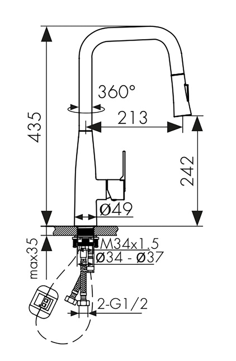22144-5 Смеситель KAISER Claro для кухни с вытяжной лейкой, серебро