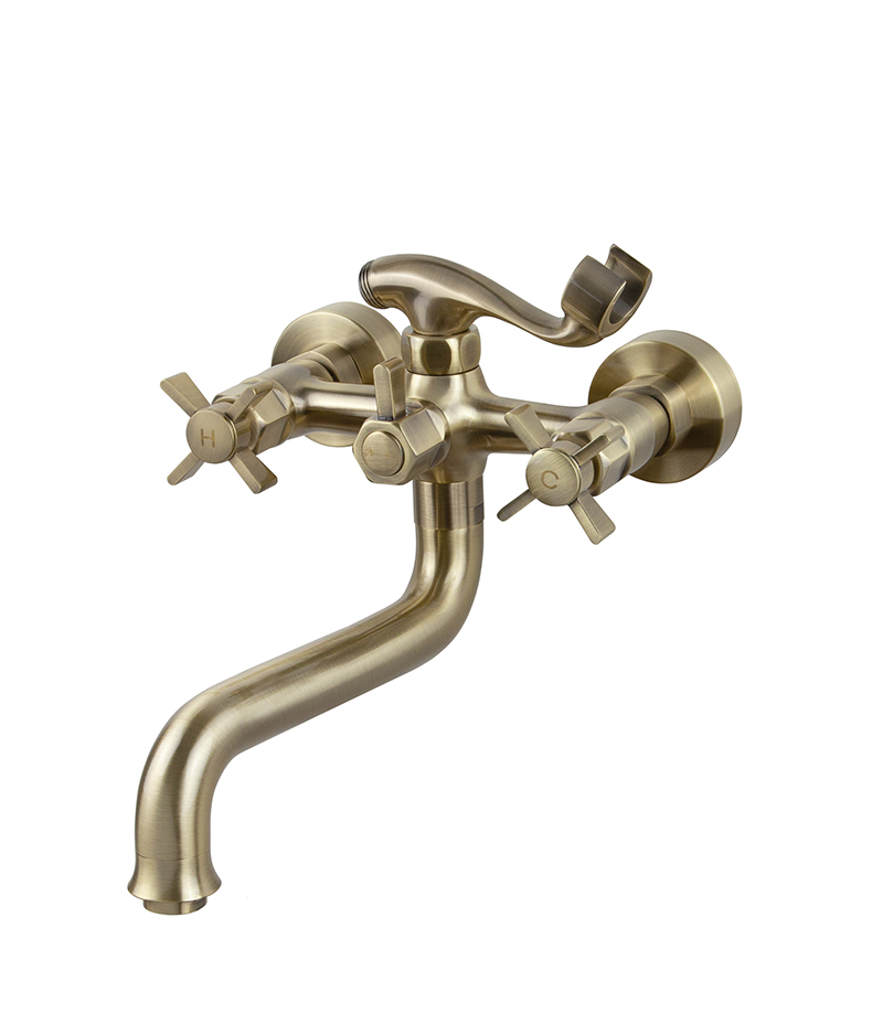 Смеситель KAISER Cross ванна к/н крест керамика (с душем) бронза