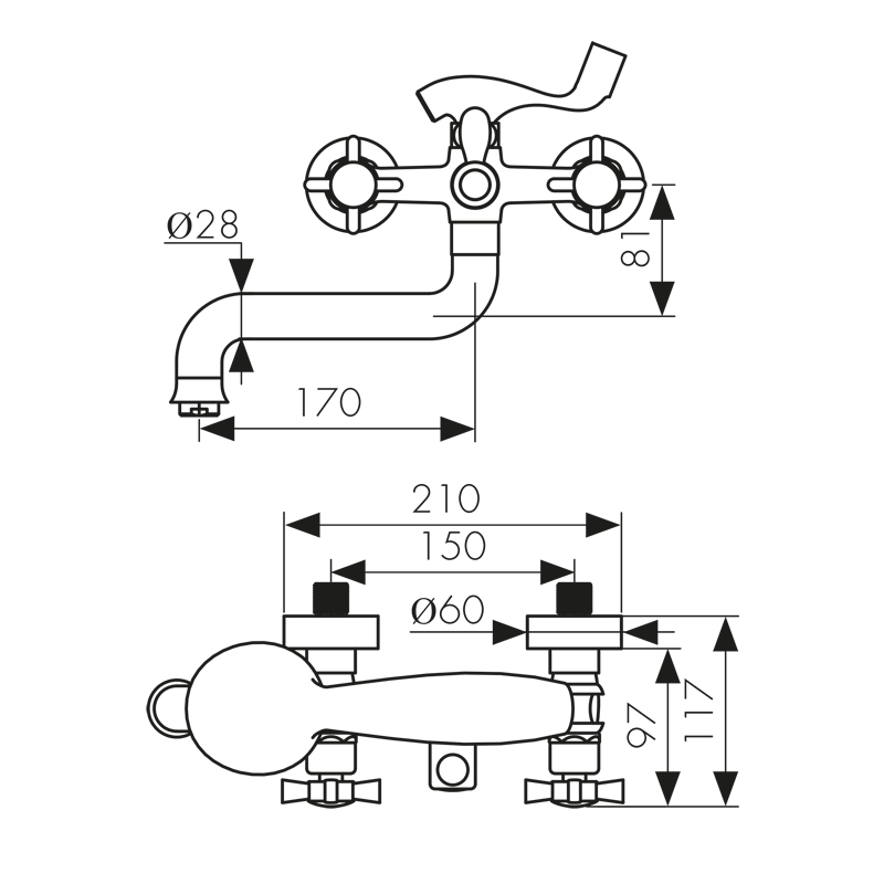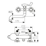 Смеситель для ванны с двумя рукоятками и коротким изливом