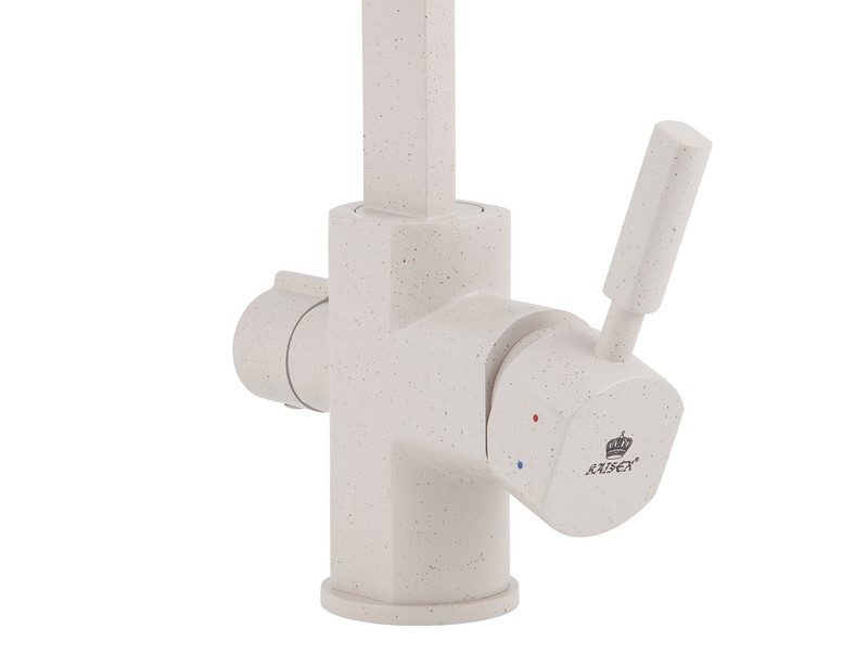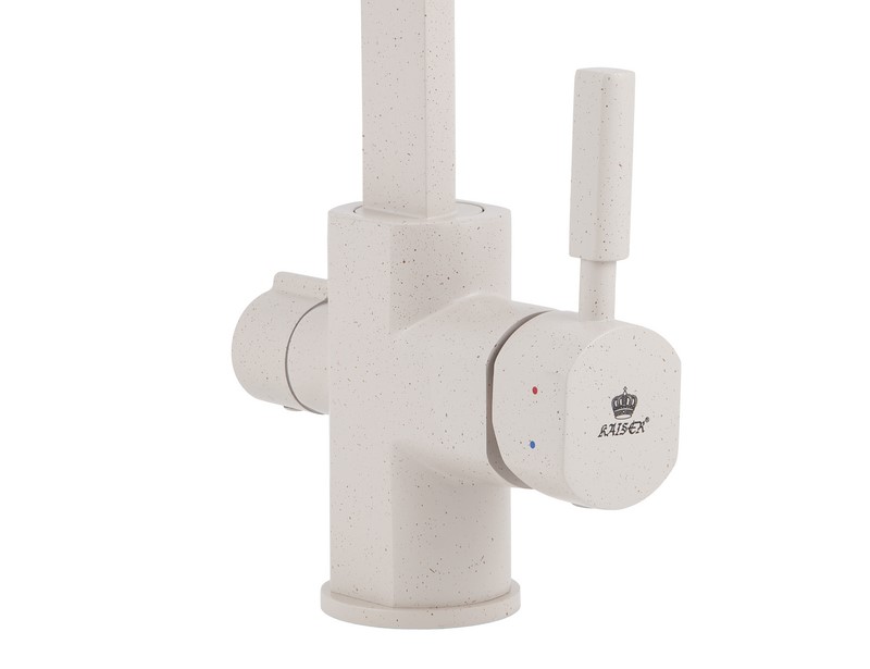 Смеситель Kaiser 40144-8 из коллекции Decor с подключением под фильтр. Для подачи питьевой воды на корпусе смесителя размещен рычаг. Смеситель имеет два аэратора для раздельного выхода проточной и фильтрованной воды, что исключает их смешивания. Преимущество совмещенных смесителей заключается в том, что не нужно делать дополнительных отверстий на мойке и устанавливать отдельный кран для питьевой воды.