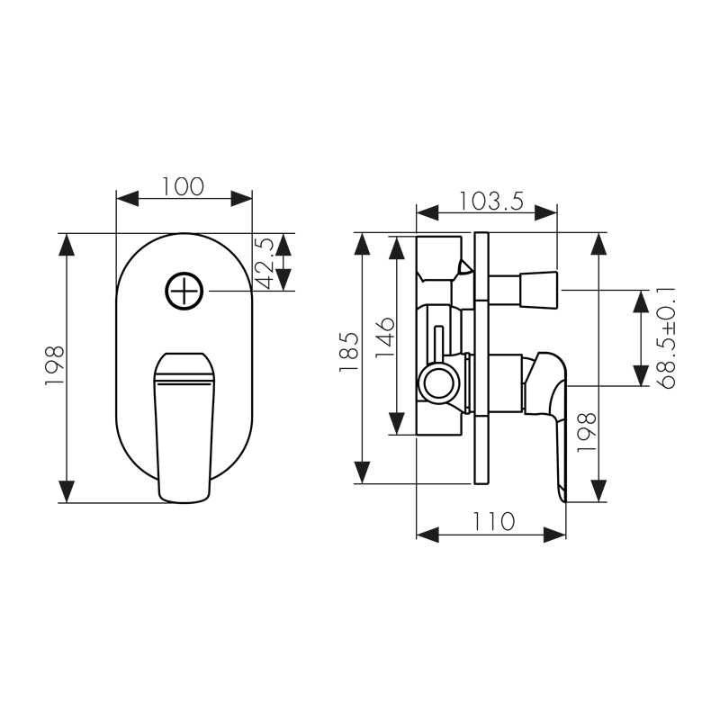 смеситель скрытого монтажа; скрытая монтажная часть; крепления |