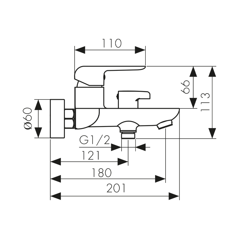 Смеситель однорычажный для ванны с коротким изливом