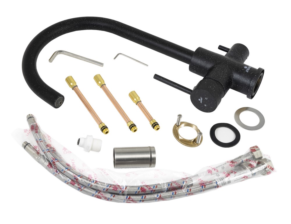 Смеситель KAISER Merkur кухня боковой под фильтр R-излив Ø35 (черный мрамор-308)