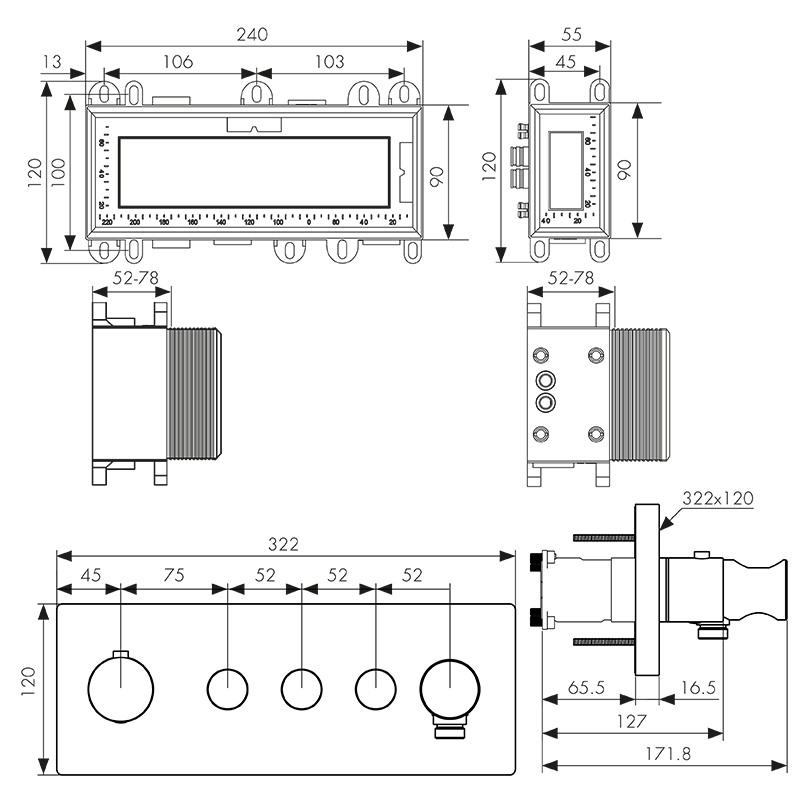 смеситель скрытого монтажа; скрытая монтажная часть; крепления |