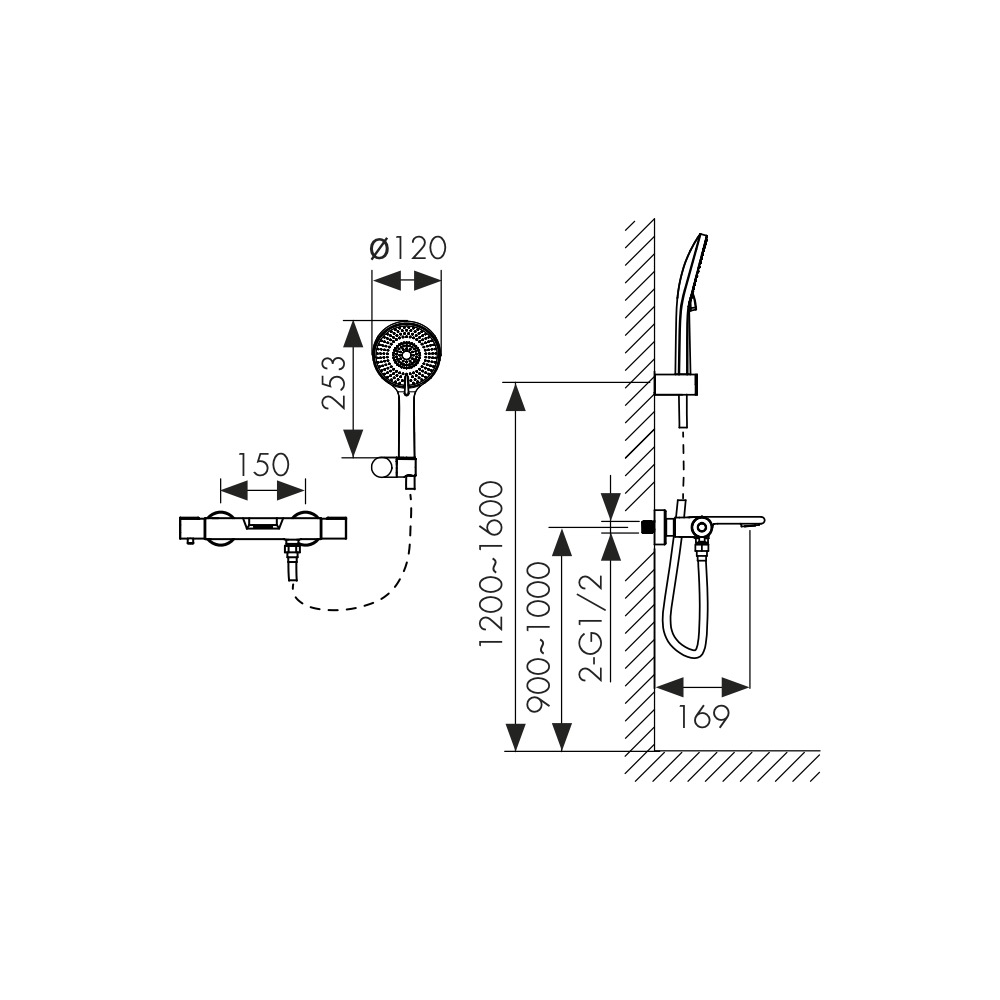 Смеситель KAISER Serio для ванны/душа с термостатом, воронёная сталь
