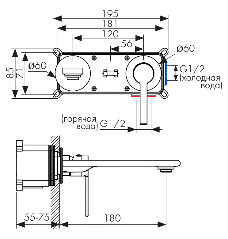 смеситель скрытого монтажа; скрытая монтажная часть; крепления |