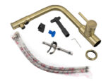 Смеситель Kaiser 13044-3 из коллекции Teka совмещен с краном для питьевой воды. Особенность модели заключается в сдвоенном изливе, внутри которого проходят две трубки, для питьевой и проточной воды. Два аэратора для раздельного выхода проточной и фильтрованной воды, исключают возможность их смешивания. Подача питьевой воды осуществляется переключателем на конце излива. Преимущество совмещенных смесителей заключается в том, что не нужно делать дополнительных отверстий на мойке и устанавливать отдельный кран для питьевой воды.